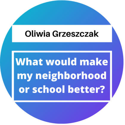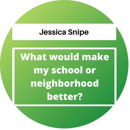"What would make my school or neighborhood better?" by Jessica Snipe.