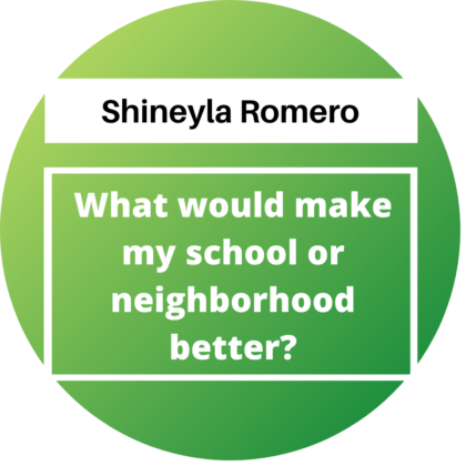 "What would make my school or neighborhood better?" by Shineyla Romero.