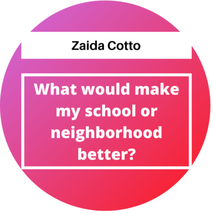 "What would make my school or neighborhood better?" by Zaida Cotto